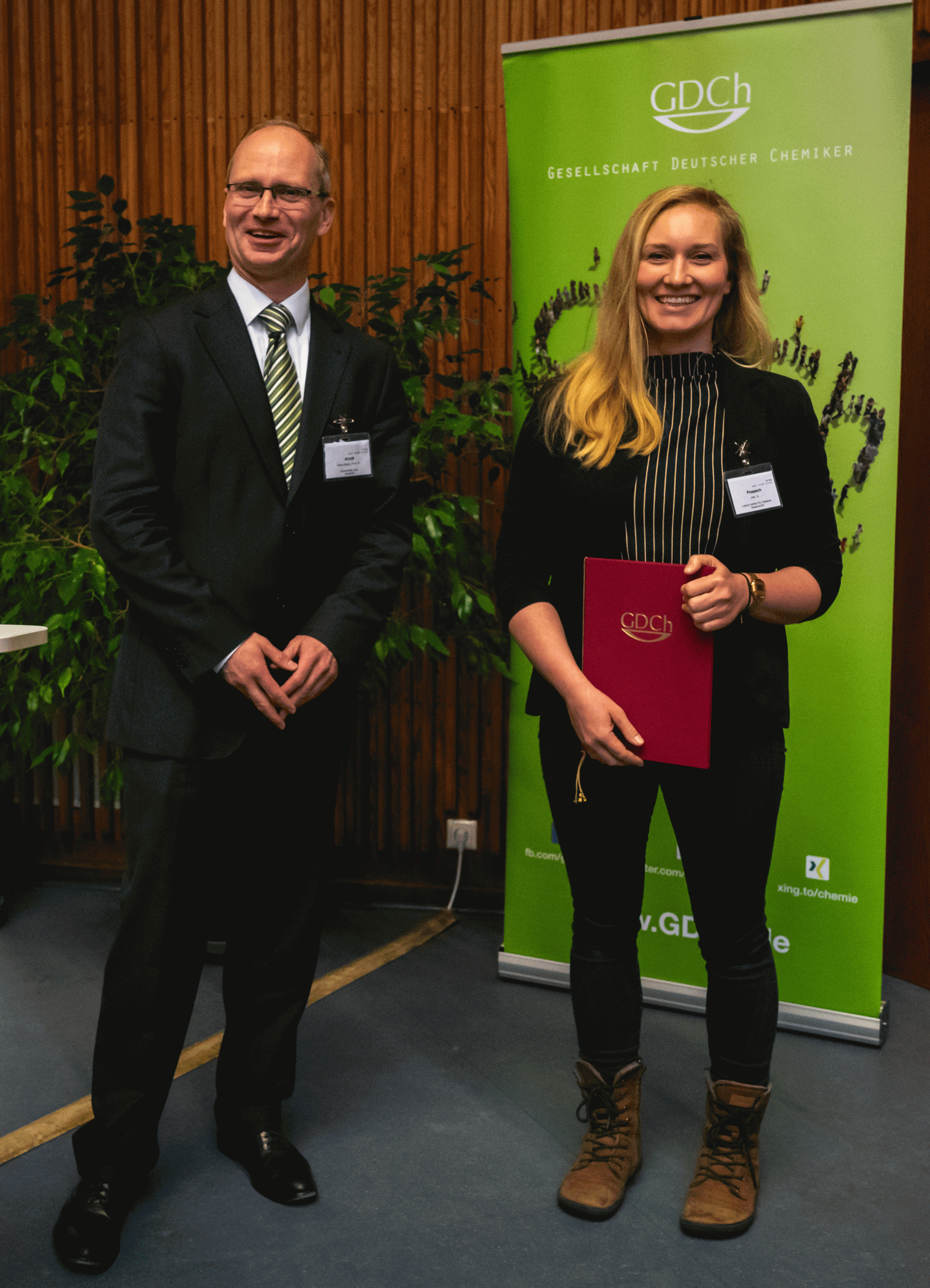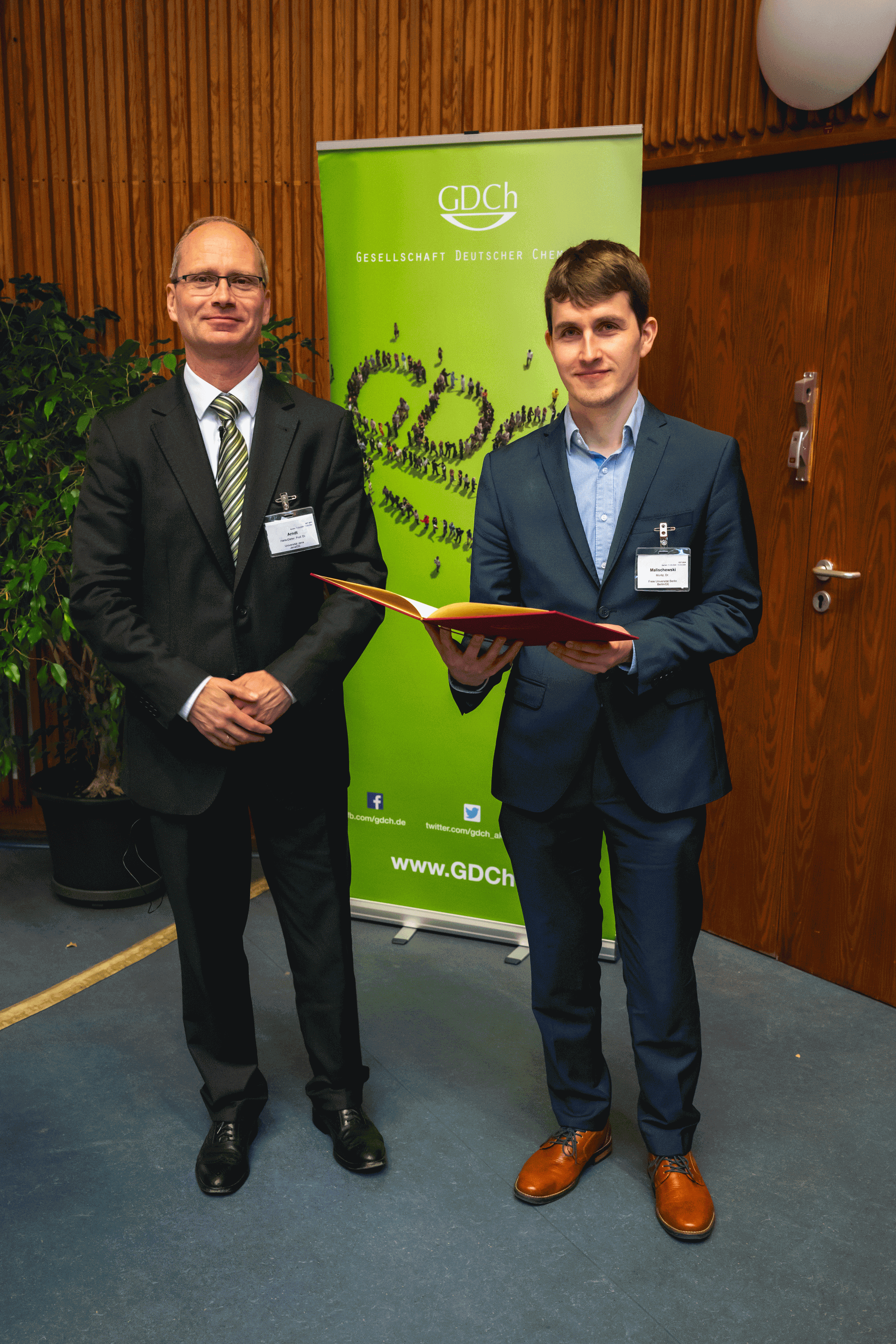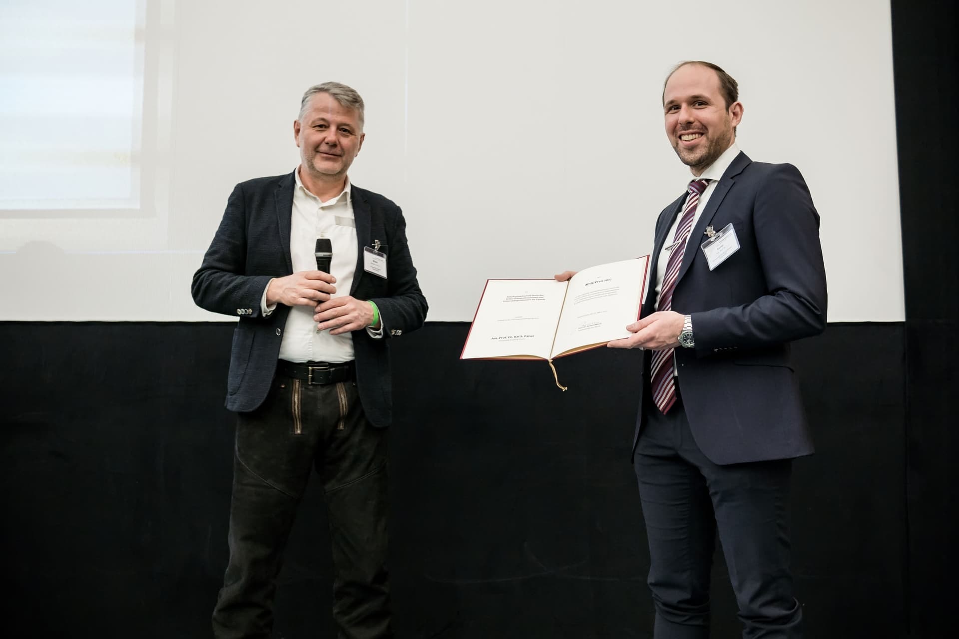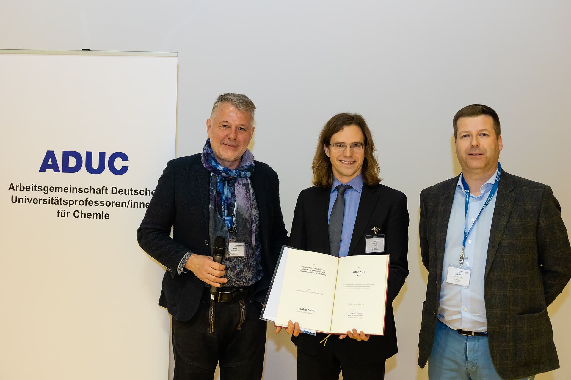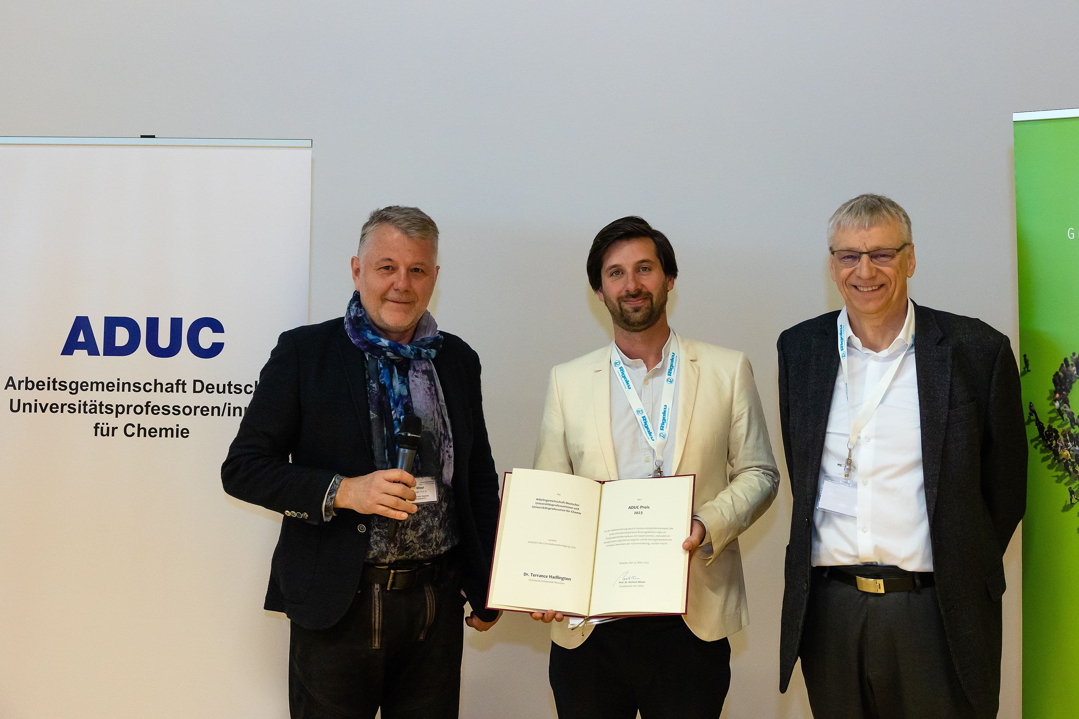 Verleihung der ADUC-Preise anlässlich der CDT 2023 in Dresden durch Prof. Dr. Nobert W. Mitzel (ADUC-Vorsitz) an (Fotos: GDCh; Fotograf: J. Lösel):