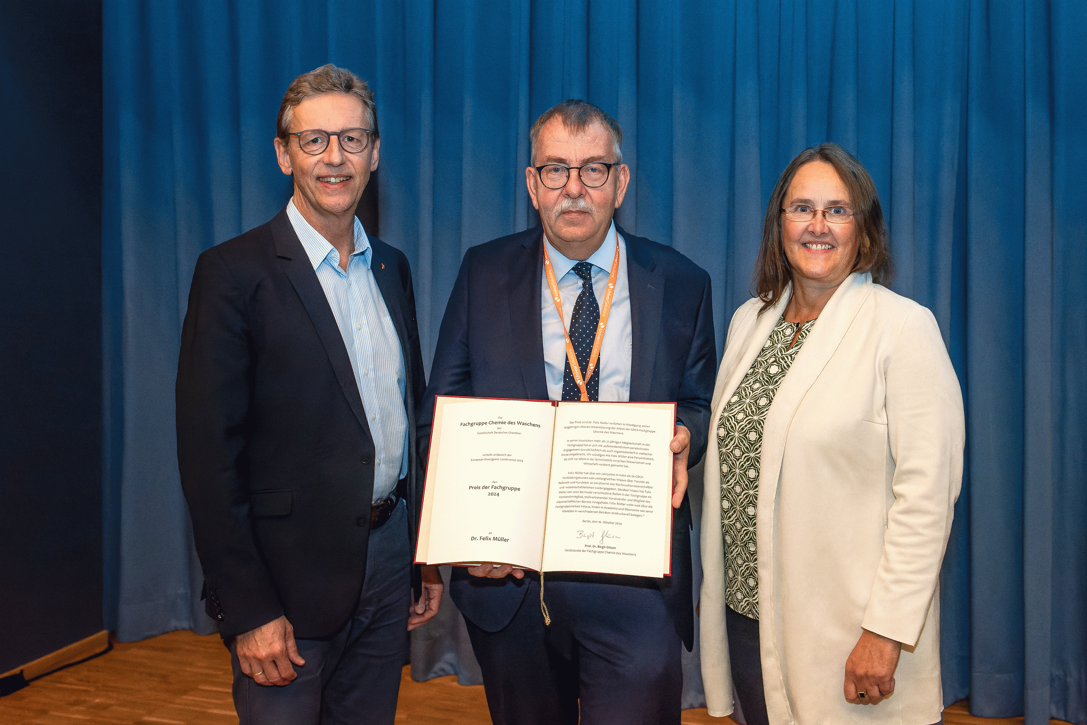 Am 16. Oktober 2024 verlieh die GDCh-Fachgruppe Chemie des Waschens anlässlich der European Detergents Conference in Berlin den Fachgruppenpreis 2024 an Dr. Felix Müller.