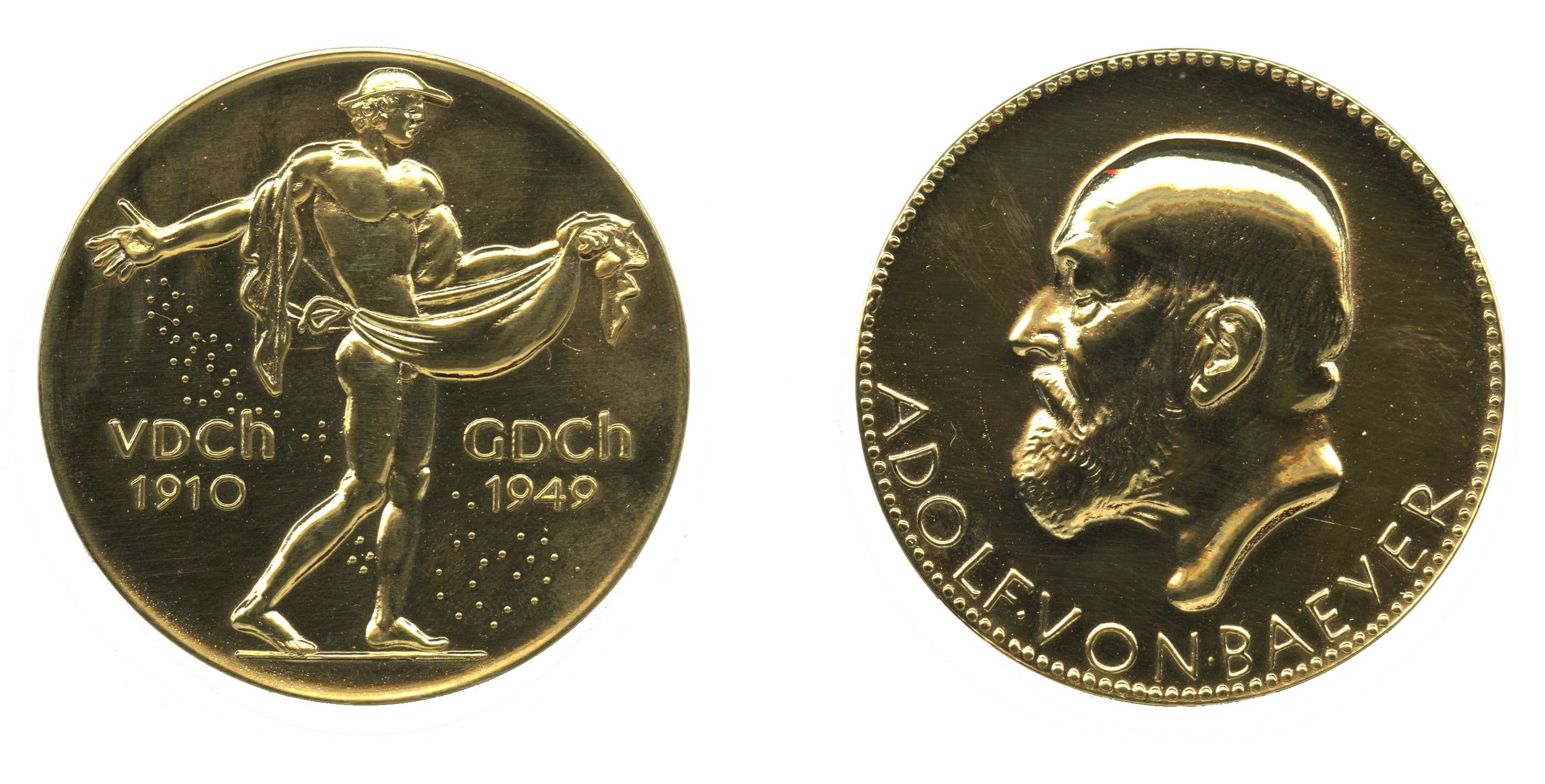 Die Adolf-von-Baeyer-Denkmünze wird Wissenschaftlerinnen und Wissenschaftler für hervorragende Arbeiten auf dem Gebiet der organischen Chemie verliehen. Der Preis wurde 1910 von Carl Duisberg zum Andenken an das 50-jährige Dozentenjubiläum und den 75. Geburtstag seines Lehrers Adolf von Baeyer gestiftet. Seit 1949 vergibt die GDCh diese Auszeichnung. Sie wurde zunächst von der Bayer AG und später aus einem Sondervermögen der GDCh finanziert. Der Namensgeber Adolf von Baeyer zählt zu den bedeutesten Chemikern seiner Zeit und wurde 1905 für die Synthese des Indigo und der Triphenylmethan-Farbstoffe mit dem Nobelpreis für Chemie geehrt.