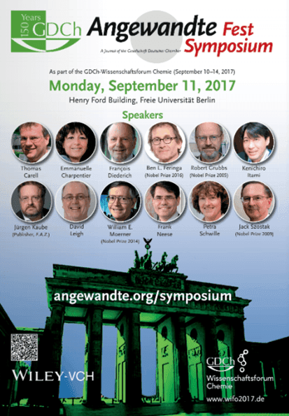 Im Rahmen des GDCh-Wissenschaftsforums Chemie - Jubiläumskongress "GDCh 150 Jahre" fand am 11. September 2017 das Angewandte Festsymposium im Henry-Ford-Bau der FU Berlin statt.
